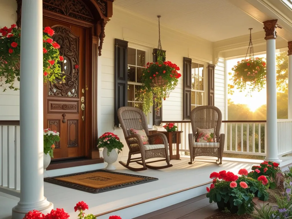 Depending on your front porch size, put a small rug or runner outside your door to make it feel like a cozy little room. Choose a design that matches your summer theme, bright colors, florals, or stripes.