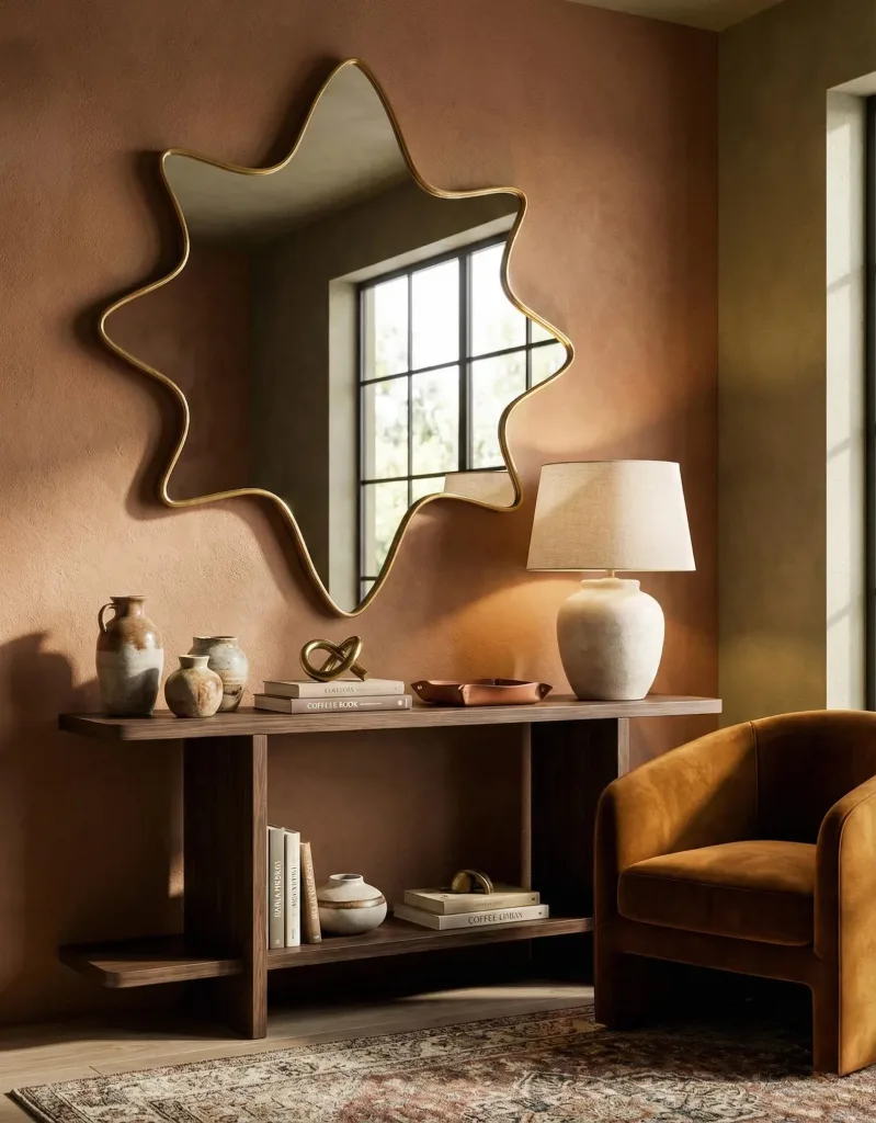 Blob mirrors aka irregular or assymetrical mirrors are becoming more popular. Not only do blob mirrors present a eccentric and playful style, they often exude a sense of whimsy and quirkiness. They can inject personality into a space and create a focal point that sparks conversations or makes a statement. Blob mirrors appeal to individuals who enjoy unconventional design choices and want to express their individuality and creativity.